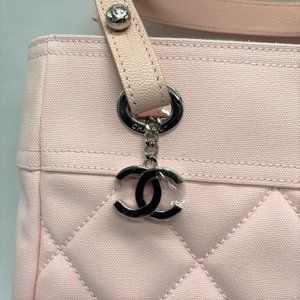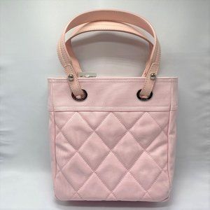 Chanel Pink Canvas Quilted Paris Biarritz Hand Bag with Silver Hardware