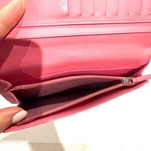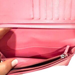 This chic fuscia pink leather wallet is perfect for any occasion. Its vibrant color adds a pop of style to your outfit. Crafted with quality materials, this wallet is both fashionable and durable.