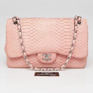 Chanel Pink Matte Python Classic Jumbo Double Flap Bag