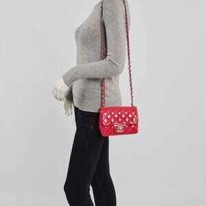Chanel Pink Quilted Patent Leather Classic Square Mini Flap Bag