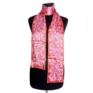 Chanel Pink/ Red Camellia Flower Silk Scarf