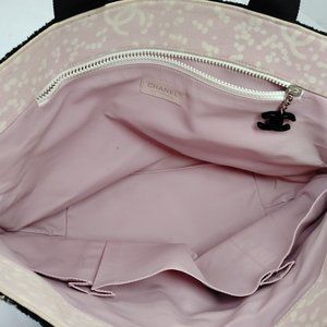 Chanel Pink X Black Terry Cloth Cc Logo Tote Bag