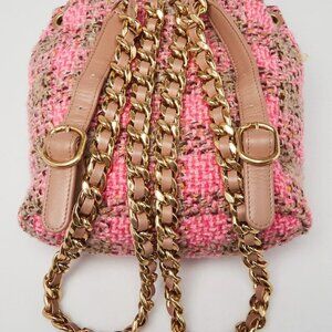 Chanel Pink/Brown Tweed Elegant Chain Backpack Bag