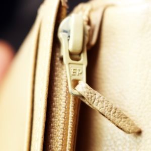 Chanel Porte Monnaie Tan Leather Wallet with Gold Tone CC Logo EUC