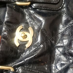 Authentic chanel bag is in good condition. Lambskin leather and aged leather style with gold hardware 16 x 11 x 4