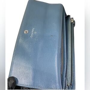 Chanel Powder Blue Logo Caviar Leather Long Wallet