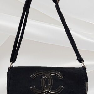 GWP (Gift with Purchase). Fluffy Black with Black CC. Adjustable strap, pocket and double magnetic closure.