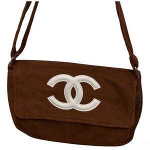 Chanel Precision Fuzzy Messenger Bag Brown CC Logo Terry Cloth New GWP