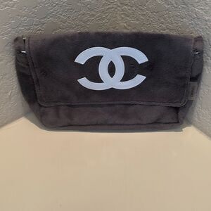 Chanel Precision Fuzzy Messenger Bag Charcoal Gray CC Logo Terry Cloth New GWP