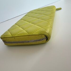 Chanel Pre-loved Diamond-Quilted Wallet in yellow lambskin leather