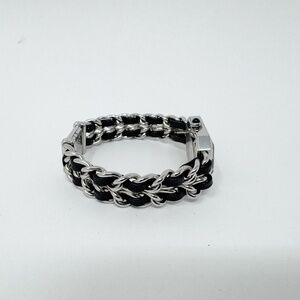 Strap: Steel chain bracelet interwoven with black leather strap