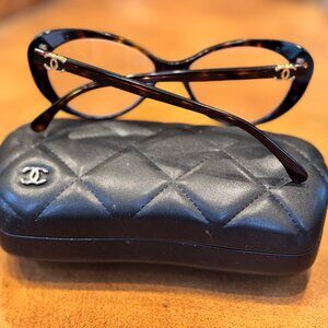 Chanel Prescription Glasses Tortoise Shell with Tweed Edging
