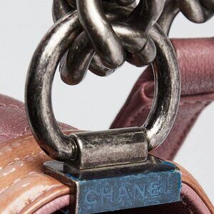 Karl Lagerfeld designed the Boy Collection as an interpretation of the boyish charm that Coco Chanel was known for. Karl was stated as saying that the very spirit of Chanel was inspired by Boy Capel, the love of her life; which is why this new collection is called the "Boy Chanel." A slight change of pace from the usual Chanel designs, this bag is made of soft quilted goatskin leather. This particular bag is the old Medium size of the collection and features a long antique Ruthenium chain-link strap with a leather pad that can be used as a long strap or looped around as a shoulder bag. It is made from thick goatskin leather and patent trim.