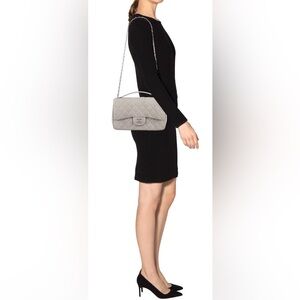 Chanel Easy Carry Flap bag with silver-tone hardware, single shoulder strap with chain-link and leather accents, single flat top handle, single slit pocket at exterior, tonal satin lining, dual pockets at interior walls; one with zip closure and flap with turn-lock closure at front. Includes authenticity card, dust bag box and shopping bag. In excellent unused condition, however, there is natural oxidation of the python leather. Please note all photos for flaws as returns are not accepted.