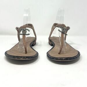 Chanel Python Leather CC Logo T-Strap Sandals Tan/Black EU39.5