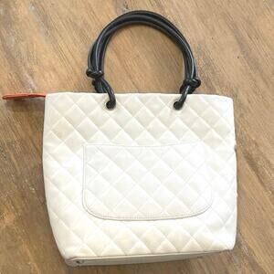 Chanel Python Ligne Cambon Tote White Quilted Leather and matching wallet