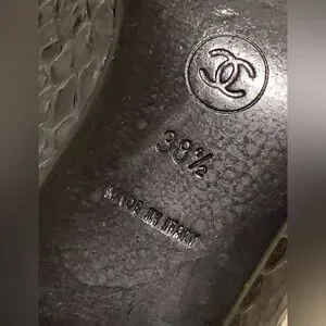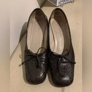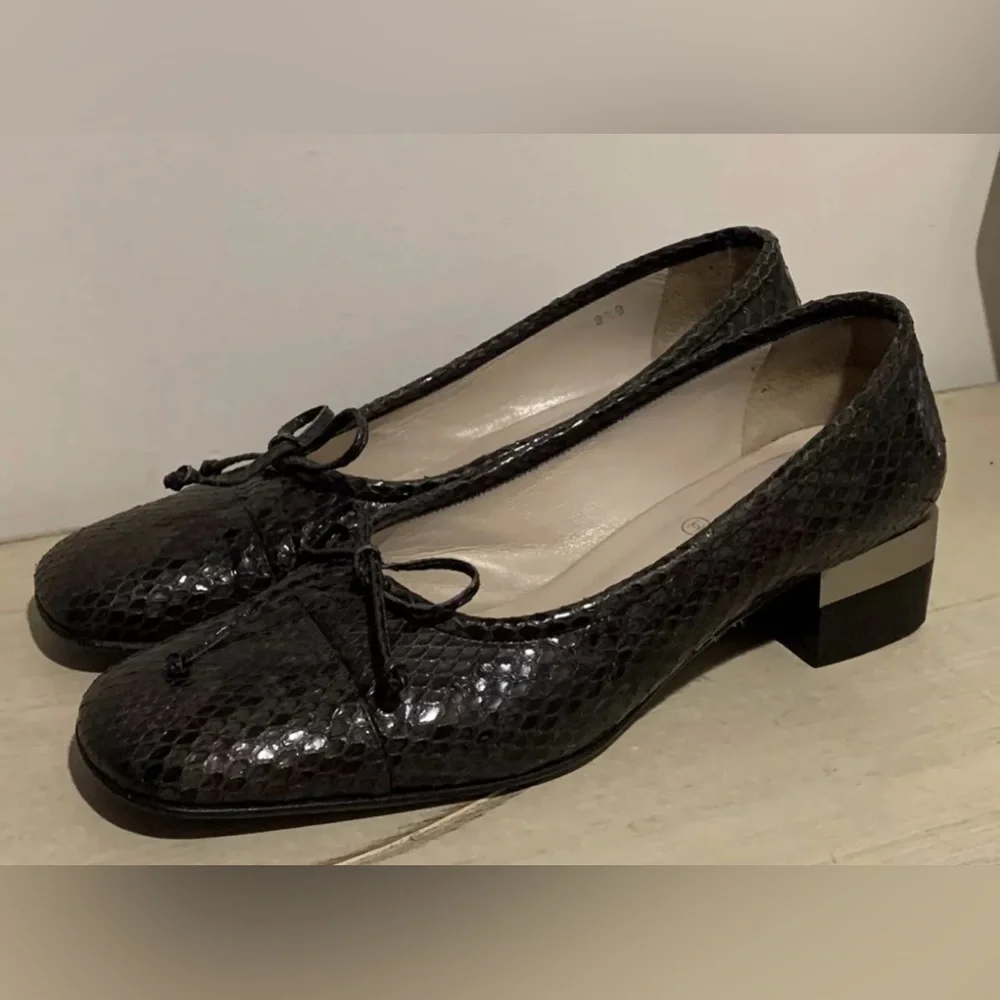 Amazing vintage Chanel python pumps. Features metal logo detail at back of heel. In great condition!