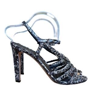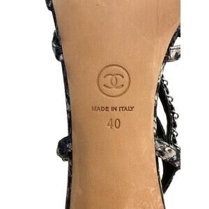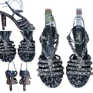 Chanel Snakeskin Chain Strappy High Heel Sandals