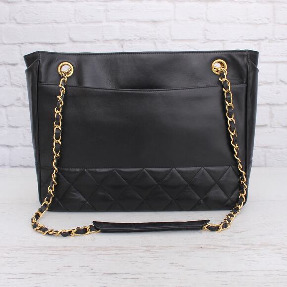 Chanel Quilted Black Lambskin Chain Tote Shoulder Purse
