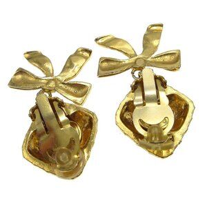 Chanel Quilted Bow Dangle Earrings Clip-On Gold