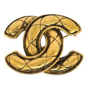 Chanel Quilted CC Brooch Pin Gold 1142 194972