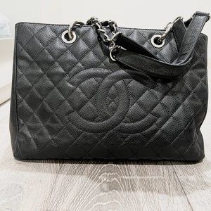 Chanel Quilted Caviar Grand Shopping Tote in Black w/ Silver Hardware
