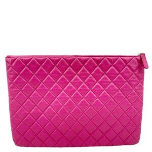 Chanel Quilted Caviar O Clutch Cosmetic Case Pink