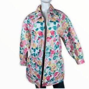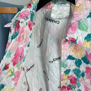 Chanel Quilted Coat with Floral Pattern and Jumbo CC Logo