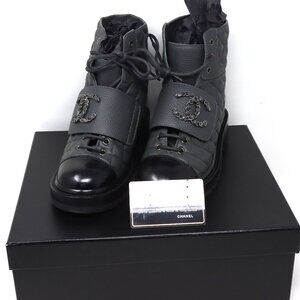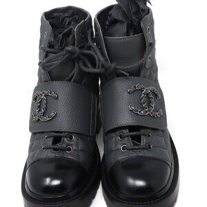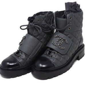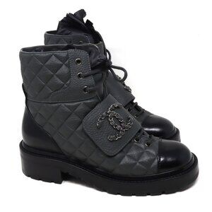 Chanel Quilted Combat grey leather boot. Comes with box, dust bag and authentic card. Size 7B.