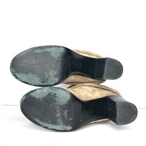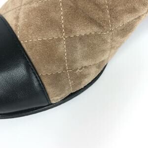 Chanel Quilted Foldover CC Clover Suede Block Heel Pull On Boots Serial G33209 Color Tan Black Size 39C EU Suede upper Leather sole Block heel Medium heel height Clover and heart detail with interlocking cc logo hardware Signs of normal wear; small area of loose stitching as shown, overall good preowned condition authentic, classic, graphic, CC, double c, trending, trendy, blogger, tiktok, casual, party, lunch, brunch, everyday, all day, channel, streetwear, vacation, fall, winter, street style, city, capped toe, lambskin