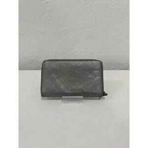 Chanel Quilted Lambskin CC Logo Accent Zip Around Wallet Silver