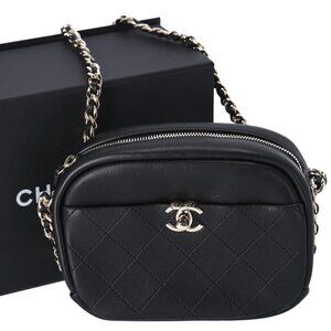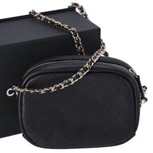 Chanel Quilted Lambskin Small Casual Trip Camera Bag Crossbody Black