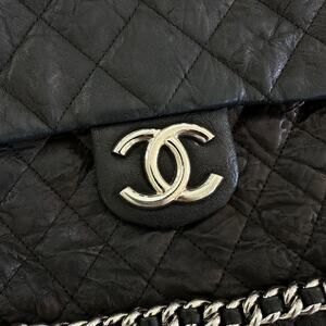Chanel - Quilted Leather Chain Around Flap Maxi Bag in Black