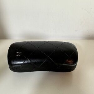 Chanel Quilted Logo Leather Sunglasses Glasses Black Case Only CC Signature