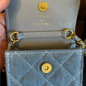Experience timeless elegance with this Chanel crossbody bag, featuring a stunning blue quilted denim design and luxurious gold-tone hardware. The classic diamond stitching adds a touch of sophistication, making it a perfect accessory for any occasion. There is no serial#, this a complimentary gift giving to Chanel customer. Review photos, before purchasing! Comes with box and dust bag!