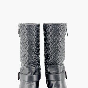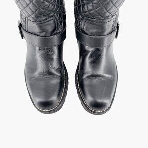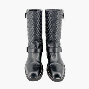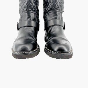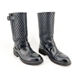 Chanel Quilted Moto Boots EU 37.5 US 6.5-7 Black Leather CC Biker Riding Calf