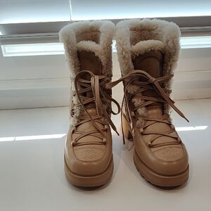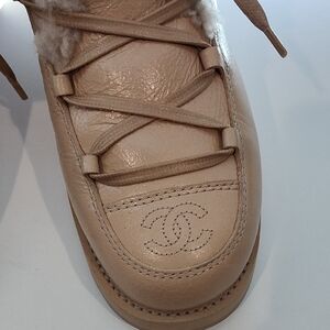 Chanel tan shearling-lined boots, size 39. In excellent used condition with very little signs of wear. No box or dust bags.