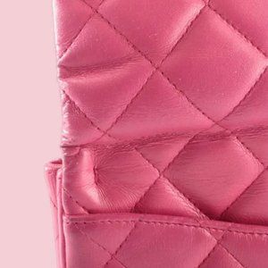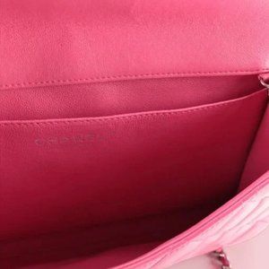 Go glam with this gorgeous Chanel Pink Lambskin Leather Chain Flap Clutch Bag with silver hardware. This lovely bag is made of lambskin leather and features a CC silvertone turn lock closure and a chic feminine shape. The versatile chain strap can be worn on the shoulder or tucked in to be carried as a clutch. An elegant and timeless piece to add to any collection! Easy to dress up for a night out or dress more casually for brunch with your friends. The options are endless!