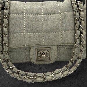 * Chanel Quilted Sports Flap bag Grey in Cotton, shoulder bag/handbag in beautiful condition