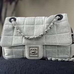 Chanel Quilted Sports Flap Grey shoulder Bag