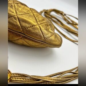 Chanel Quilted Vintage Rare Gold Bronze Waist Pouch bag Tie Fringe sling