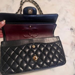 Chanel quilted lambskin medium cc flap bag. The bag has some minor wear marks such as scratched and leather discoloration. ( see photos) authentic card comes with bag.