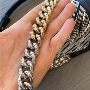 One used once! Very rare Chanel boy bag. Black with navy and white detail and gold and silver detail.