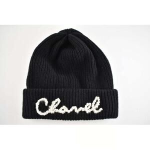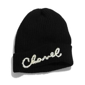 Size: One Size Name: Beanie Color: Black Style: Hat Style#: AA7626 B05931 94305 Season: REV Material: 100% Cashmere Script pearl embroidered CHANEL logo Black cashmere soft fabric material One size fits all SUPER RARE SOLD OUT WORLDWIDE