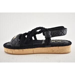 Chanel REV Black Gold Cord Rope CC Quilted Mule Ankle Strap Dad Sandal Flat 36