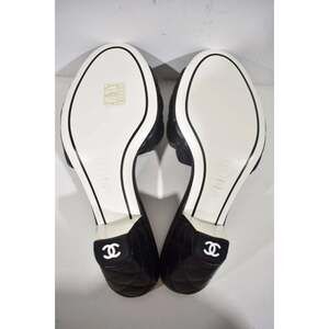 Chanel REV Black Lambskin Quilted CC Gold Logo Cone Heel Mule Slide Sandal 37