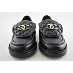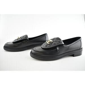 Chanel REV Black Quilted Flap Turnlock CC Logo Mule Slip On Flat Loafer 37