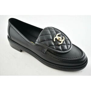 Chanel REV Black Quilted Flap Turnlock CC Logo Mule Slip On Flat Loafer 39