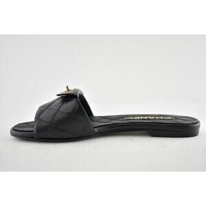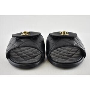 Chanel REV Black Turnlock Quilted Gold CC Logo Mules Slide Sandal Flop Flat 35