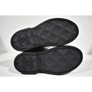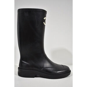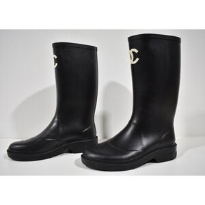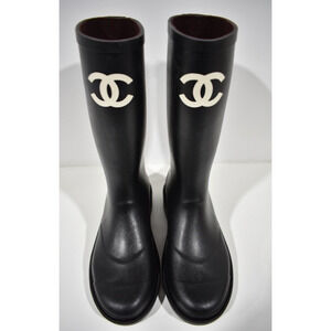 Chanel REV Black White Caoutchouc CC Logo High Pull On Rubber Rain Boots 35